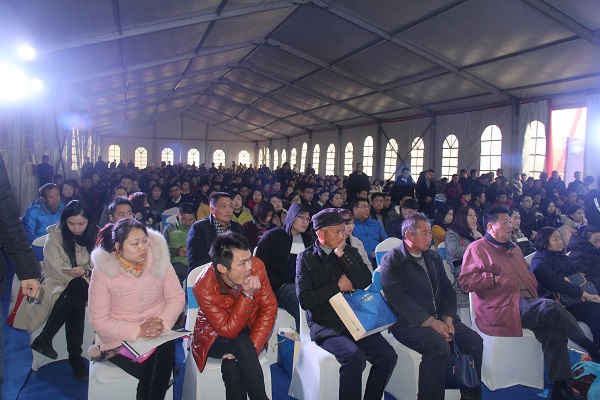 開盤當(dāng)日,客戶車輛在引導(dǎo)員指引下魚貫而入停靠街道兩旁排起條條長龍,活動帳篷內(nèi)更是人頭攢動,座無虛席,場面十分火爆。本期產(chǎn)品繼續(xù)采用搖號方式予以加推,在限售、限價等政策影響下,六安市場像今天這種熱銷場面已不多見。